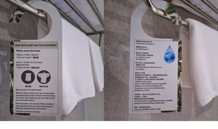 We encourage all our guests to join us in preserving the environment by participating in our green initiatives such as reusing towels, reducing linen changes, using glass bottles for water instead of plastic containers and choosing sustainable service options during their stay.